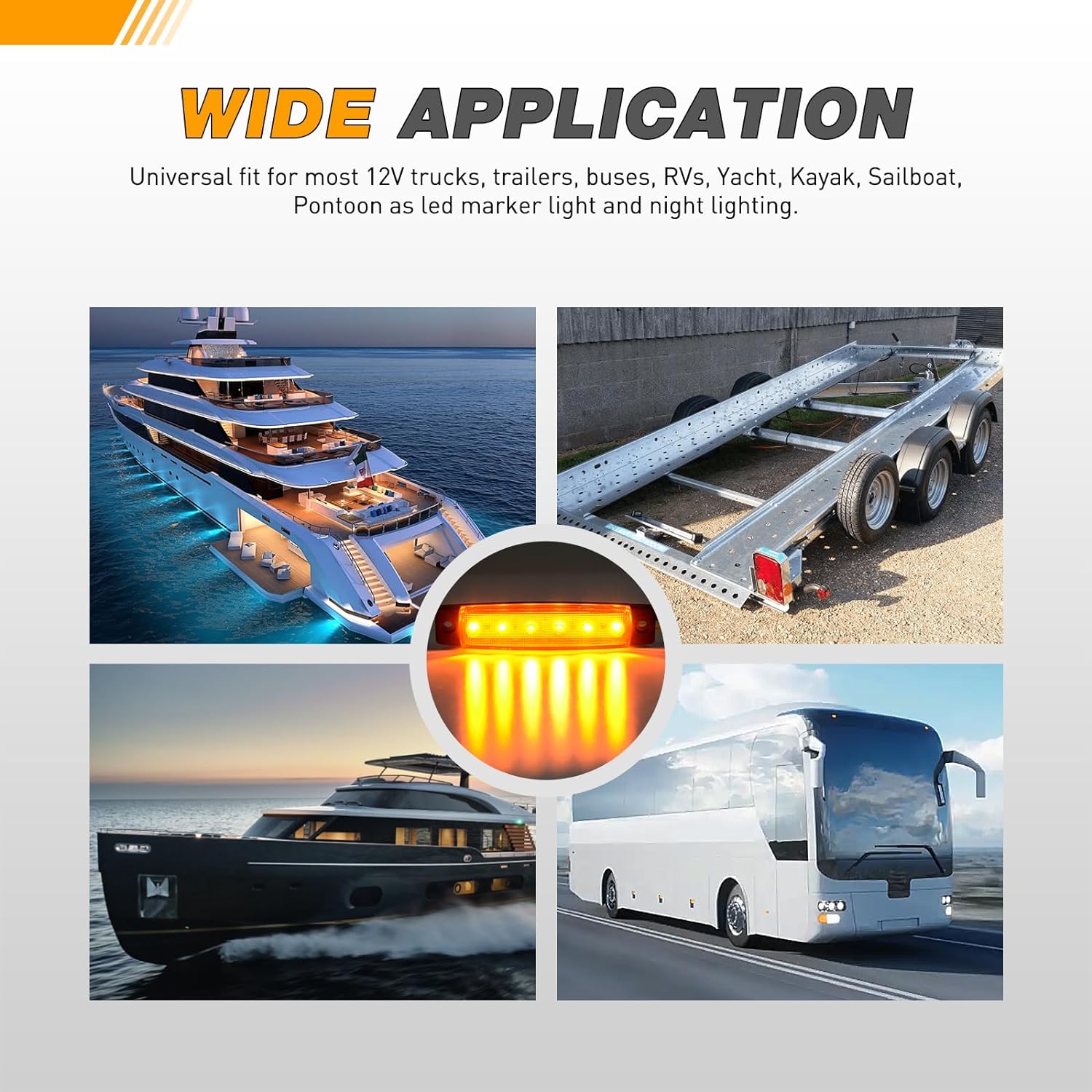 - Widely application: Fit for most 12V Yacht, Kayak, Sailboat, Pontoon, Truck, Trailer, Bus, RV etc. And Excellent lighting and high waterproof performance make this light perfect for working as led indicator light, boat light, front side rear marker light, rock light and night lighting