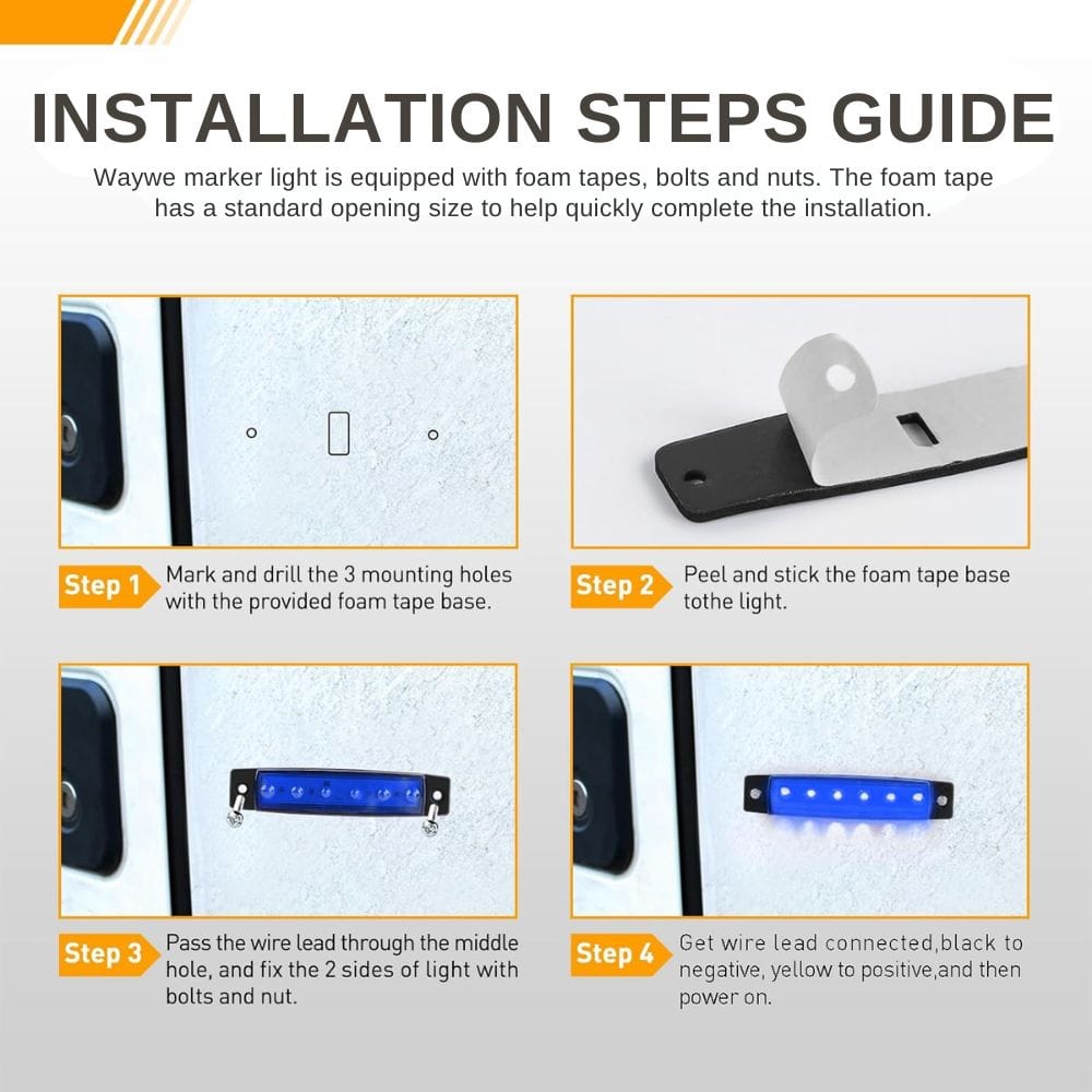 - Package Include: 10pcs blue marker light, hardware pack and foam pad. 2 Years Warranty Honored by Waywe