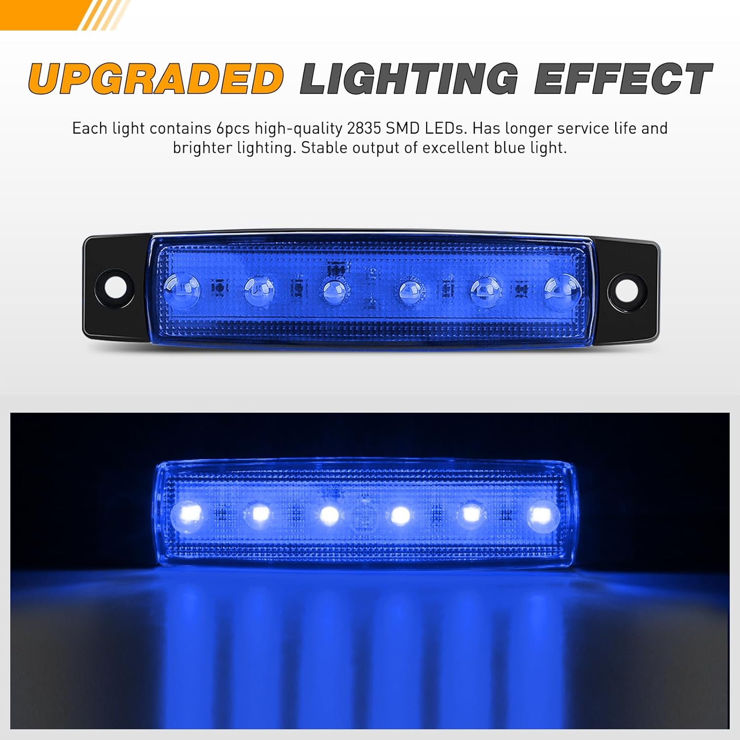 Waywe 3.8Inch Side Marker Light 10PCS 6LED Blue Trailer Camper Clearance Marine Boat Navigation Port Starboard Indicator Lights for 12V DC Kayak Sailboat Yacht Truck RV