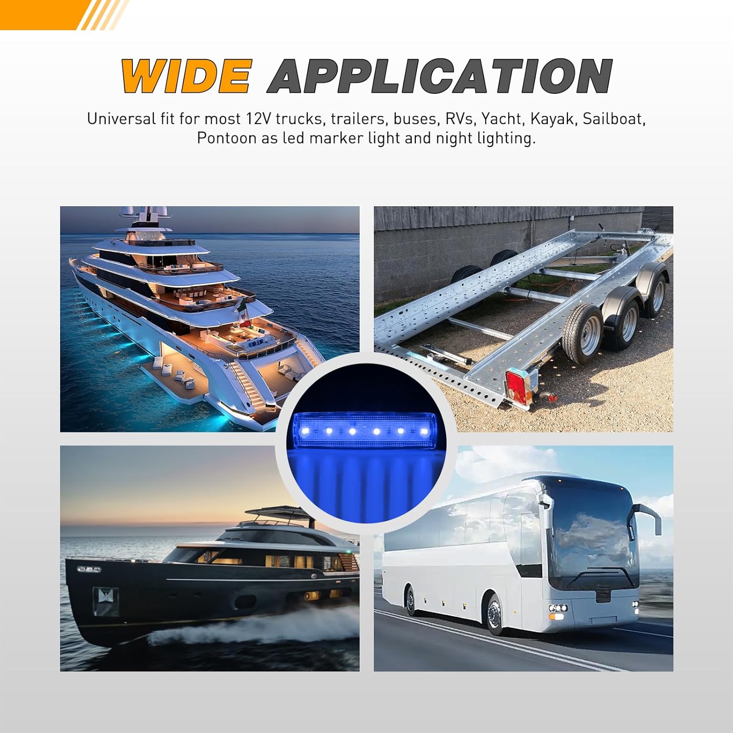 - Widely application: Fit for most 12V Yacht, Kayak, Sailboat, Pontoon, Truck, Trailer, Bus, RV etc. And Excellent lighting and high waterproof performance make this light perfect for working as led indicator light, boat light, front side rear marker light, rock light and night lighting