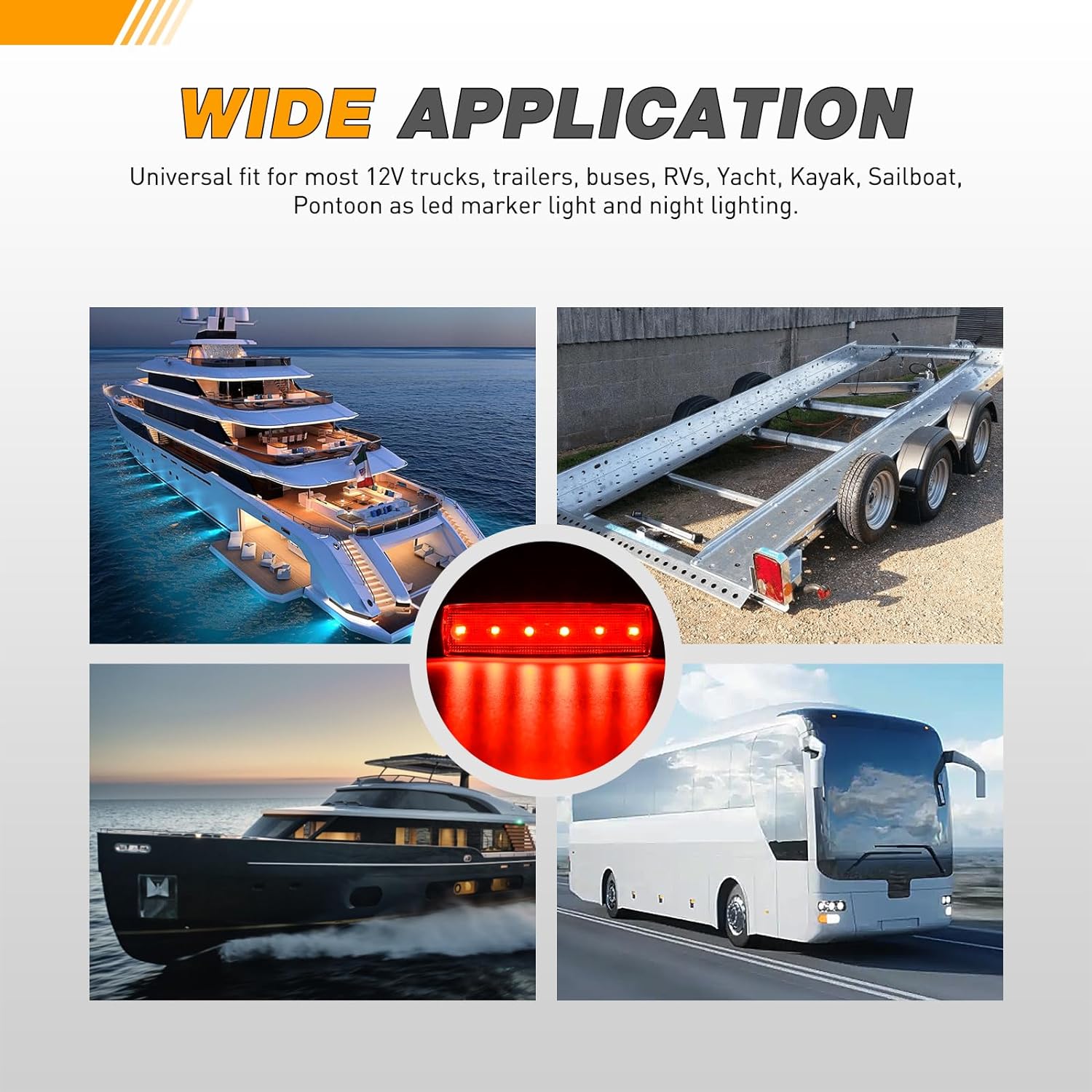 - Widely application: Fit for most 12V Yacht, Kayak, Sailboat, Pontoon, Truck, Trailer, Bus, RV etc. And Excellent lighting and high waterproof performance make this light perfect for working as led indicator light, boat light, front side rear marker light, rock light and night lighting