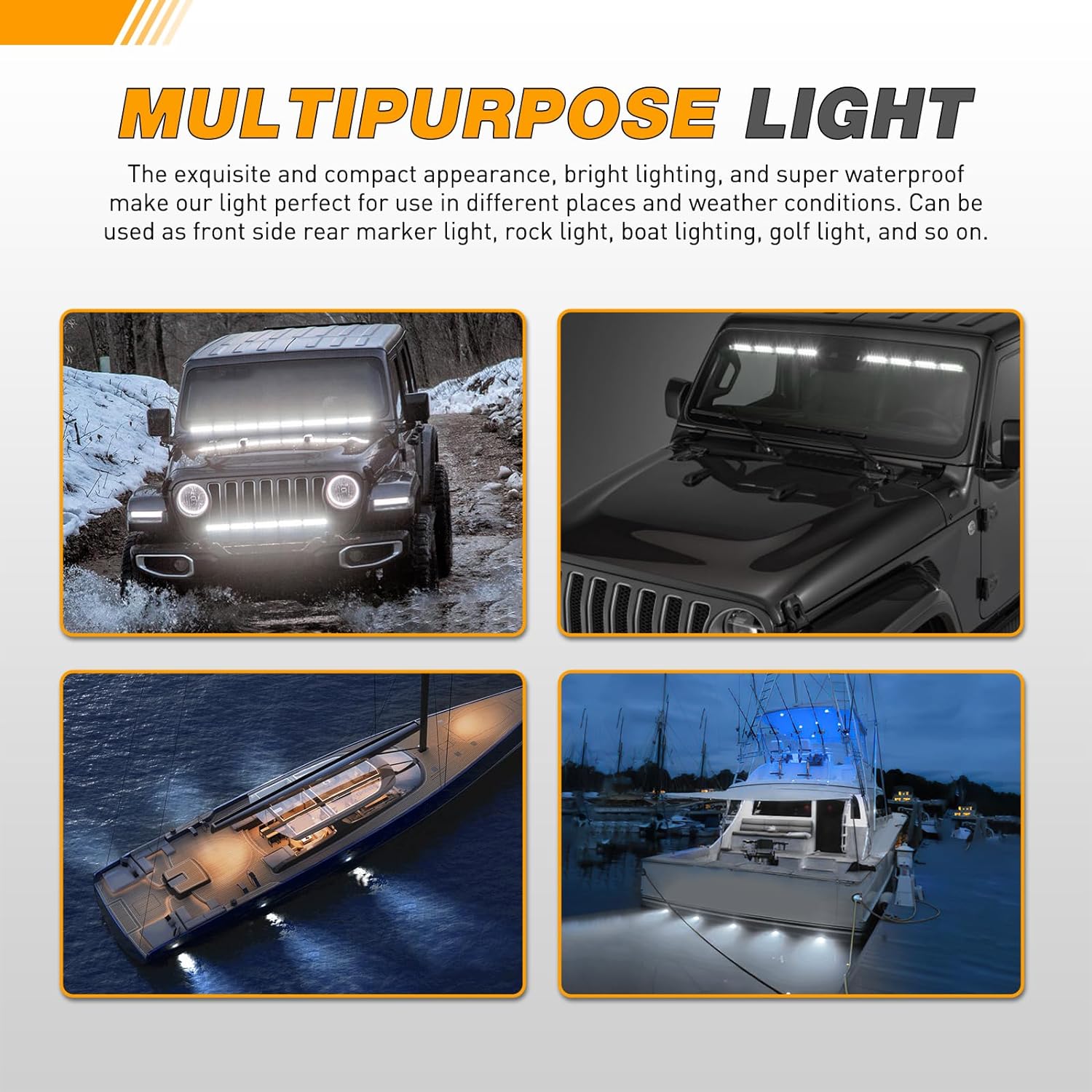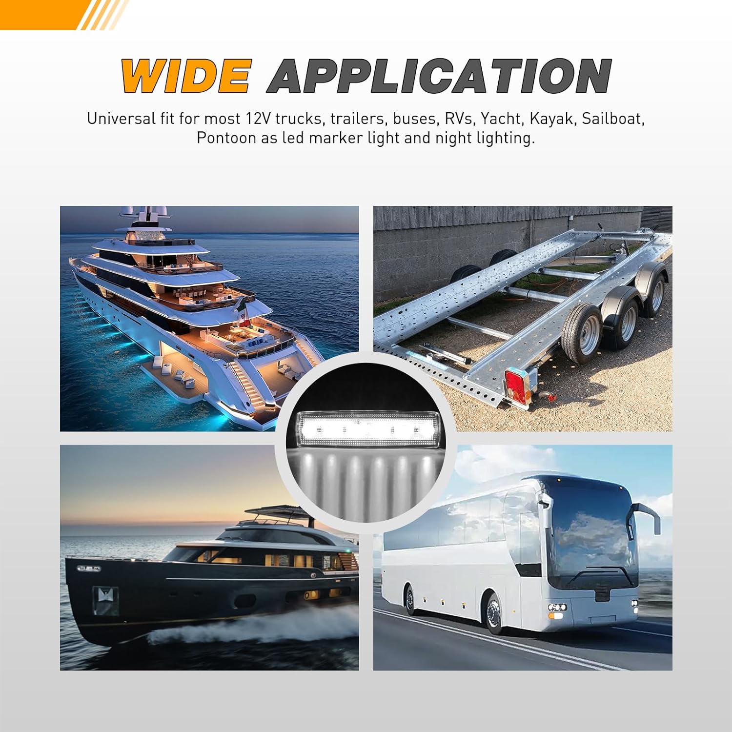 - Widely application: Fit for most 12V Yacht, Kayak, Sailboat, Pontoon, Truck, Trailer, Bus, RV etc. And Excellent lighting and high waterproof performance make this light perfect for working as led indicator light, boat light, front side rear marker light, rock light and night lighting