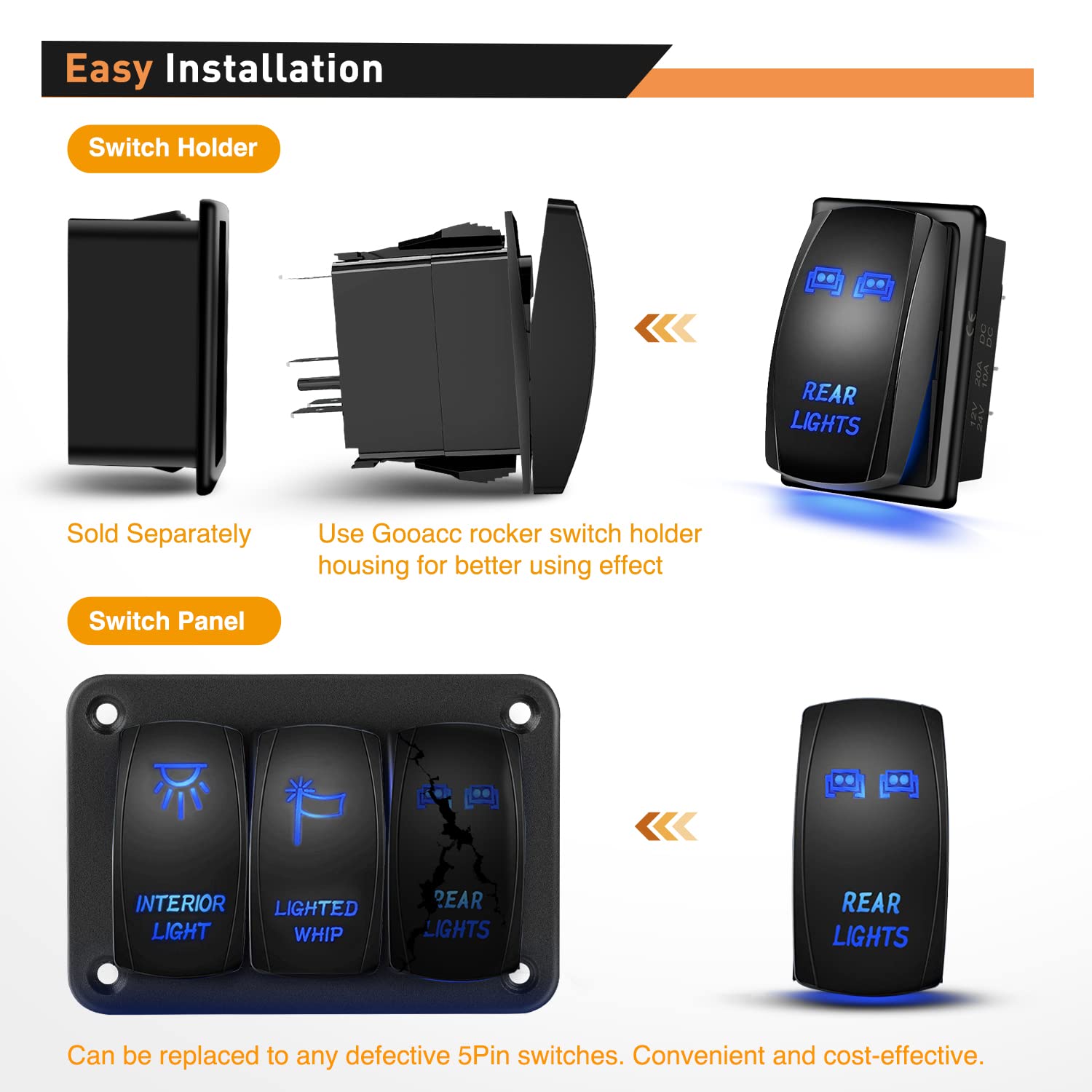 - Easy to install and use: 5 pin on-off rocker switch with SPST design (single pole single Throw), simple installation, freely turn on or off the light