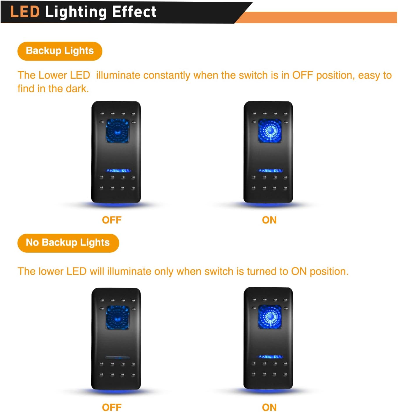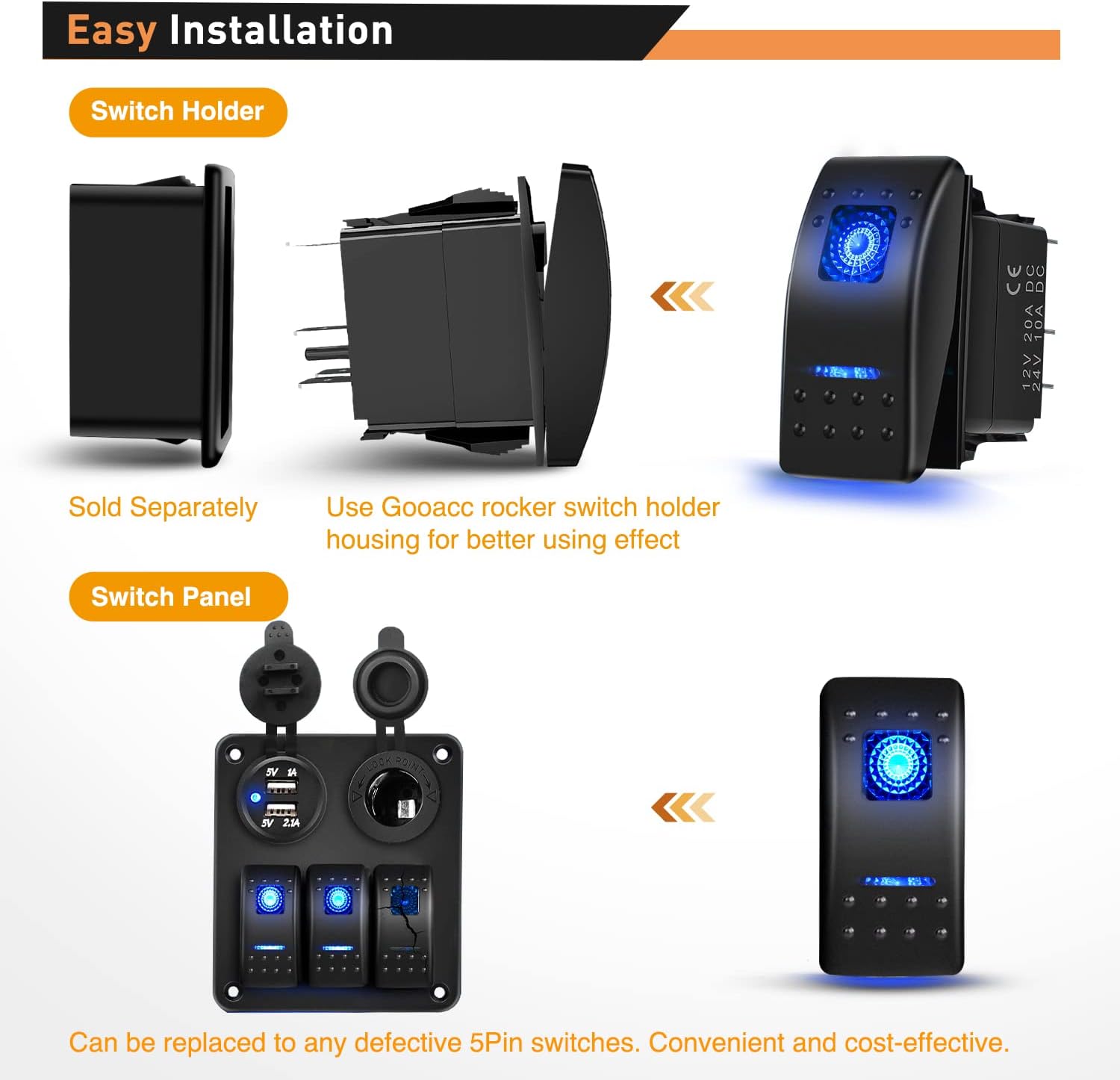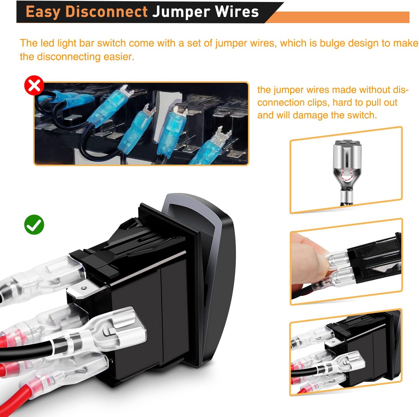 - Wide Application: standard 5 Pin switch, rated at 20amp/12VDC and 10amp/24VDC, available for upgrading most wiring harness to control Led Light Bar, Led Work Lights, Fog Lamps, Headlights, Taillights and Auxiliary Lamps, etc.