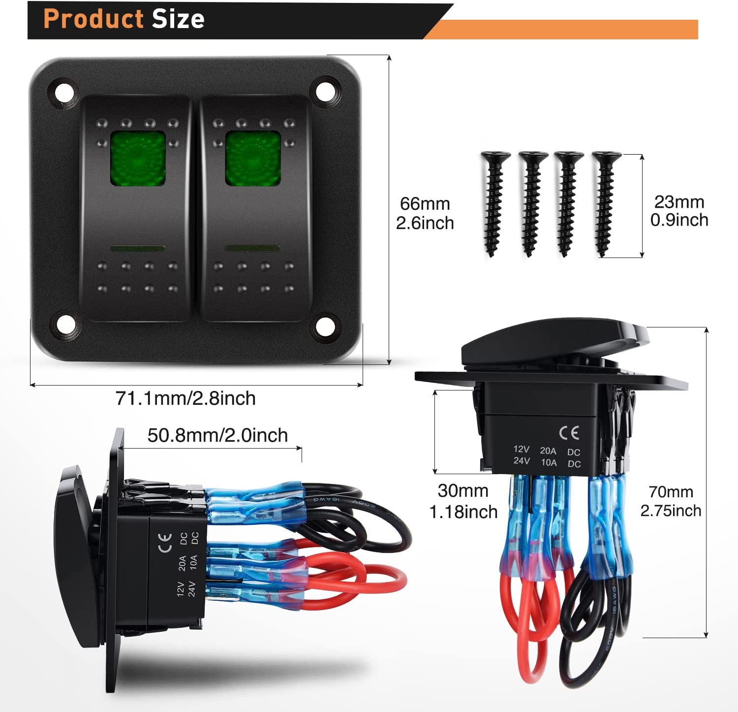 - Package Includes: A pre-wired rocker switch panel, 4 Screws, a wiring diagram.