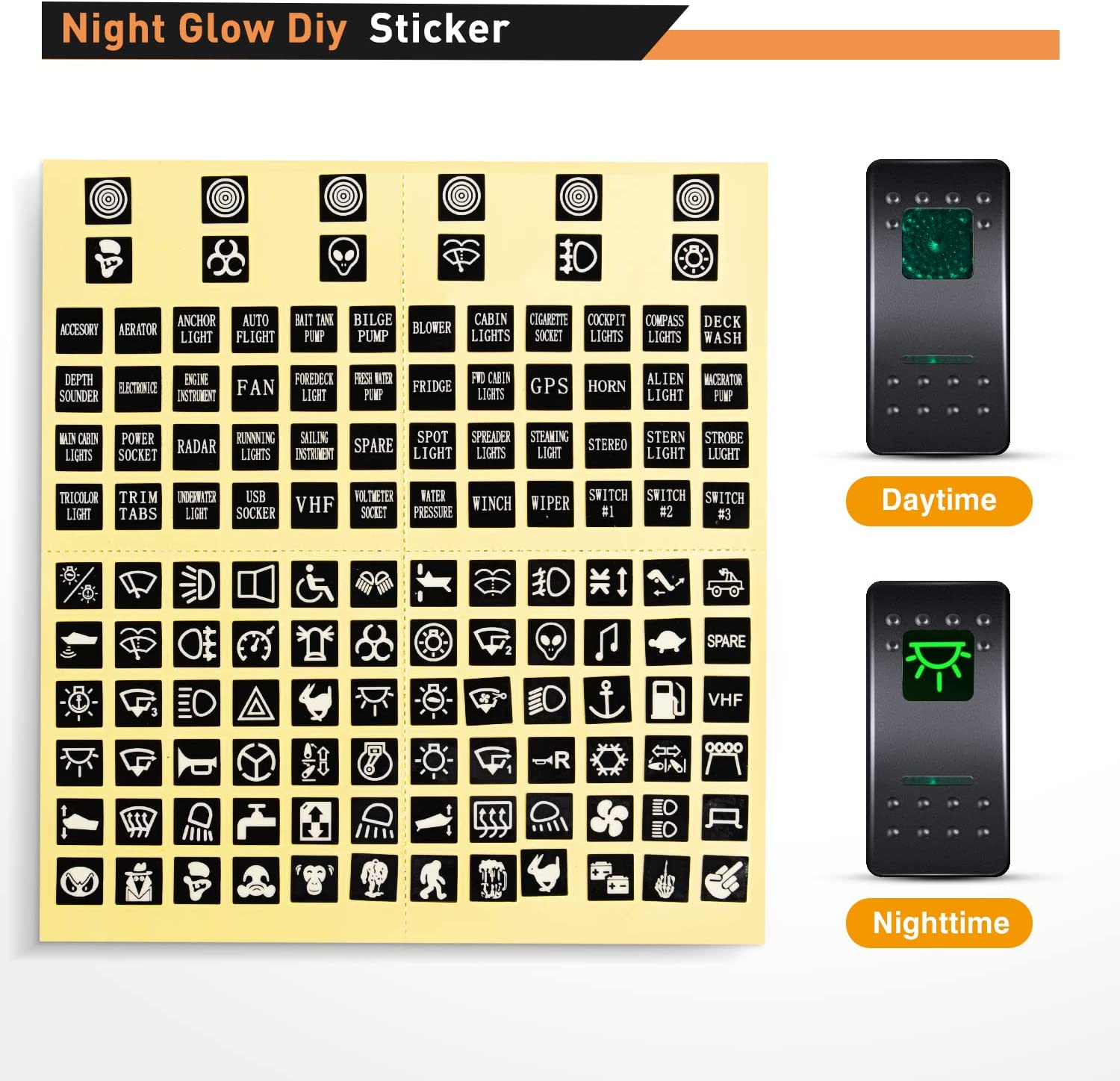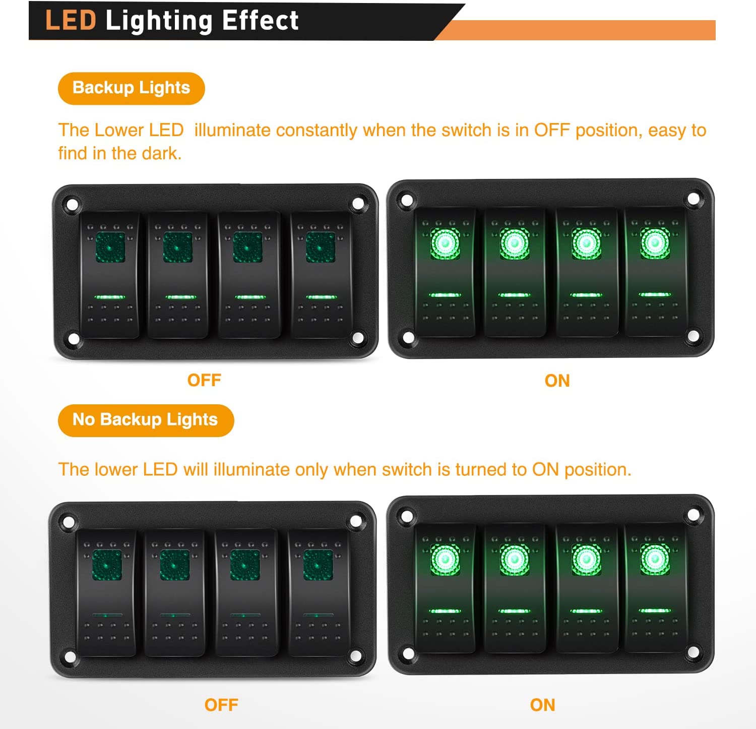 - 4 Gang rocker switch aluminum panel with DIY stickers and night glow stickers can customize these switches as your demands to remind you while using With pre-wired wiring harness for you to easily install in both 12V and 24VDC vehicles.