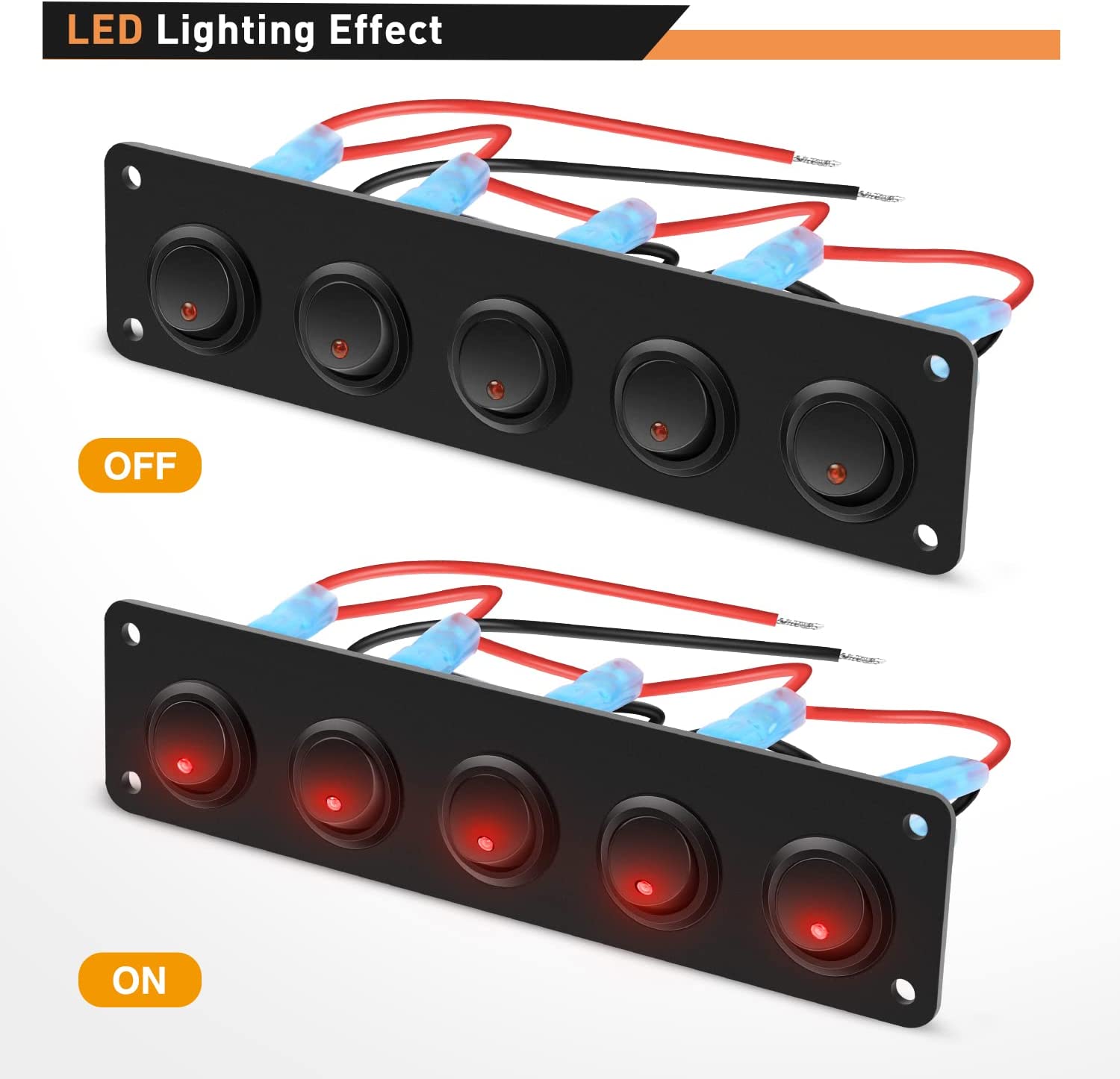 - Single Light Switch: There are 5 single on-off switches of the 5 Gang switch panel. Each switch controls its own LED device. Great for all types of circuit control