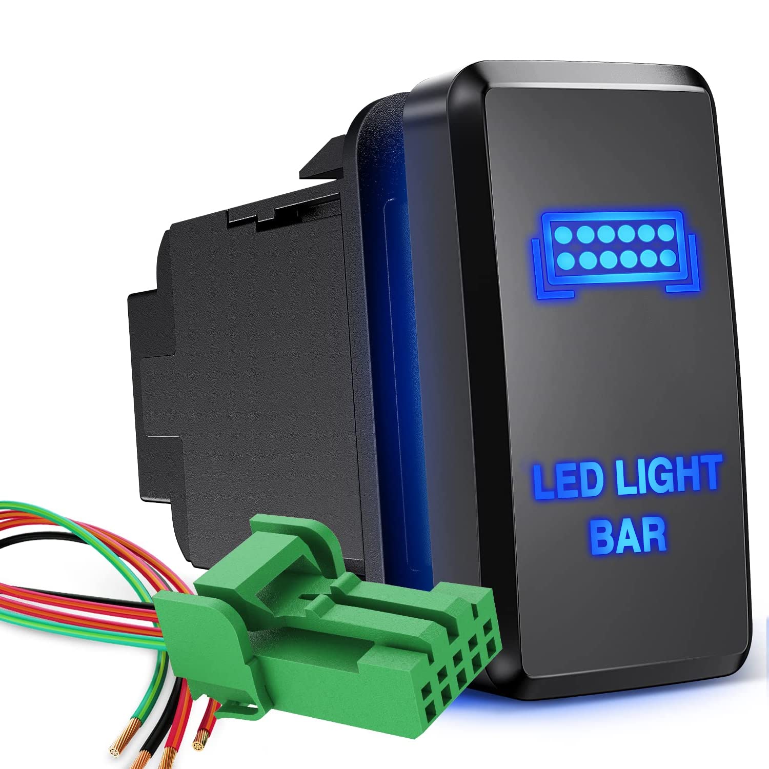 Waywe LED Light BAR Push Button Switch 12V ON Off Switches with Connector Wire Kit 1.54" x 0.83" Replacement for Toyota Tacoma Tundra 4Runner FJ Cruiser Hilux Fortuner