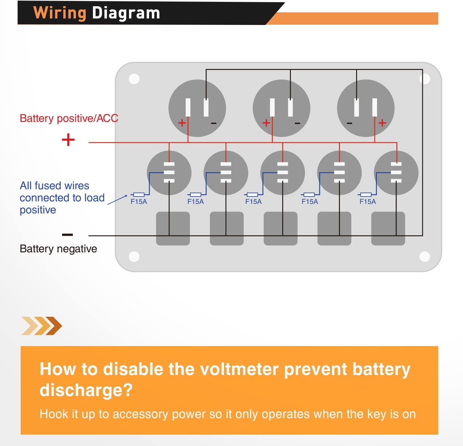 - Safety protection: real time led voltmeter shows the status of the voltage. pre-wire design with 15a fuse providing you with an overload, over-current and short circuit protection