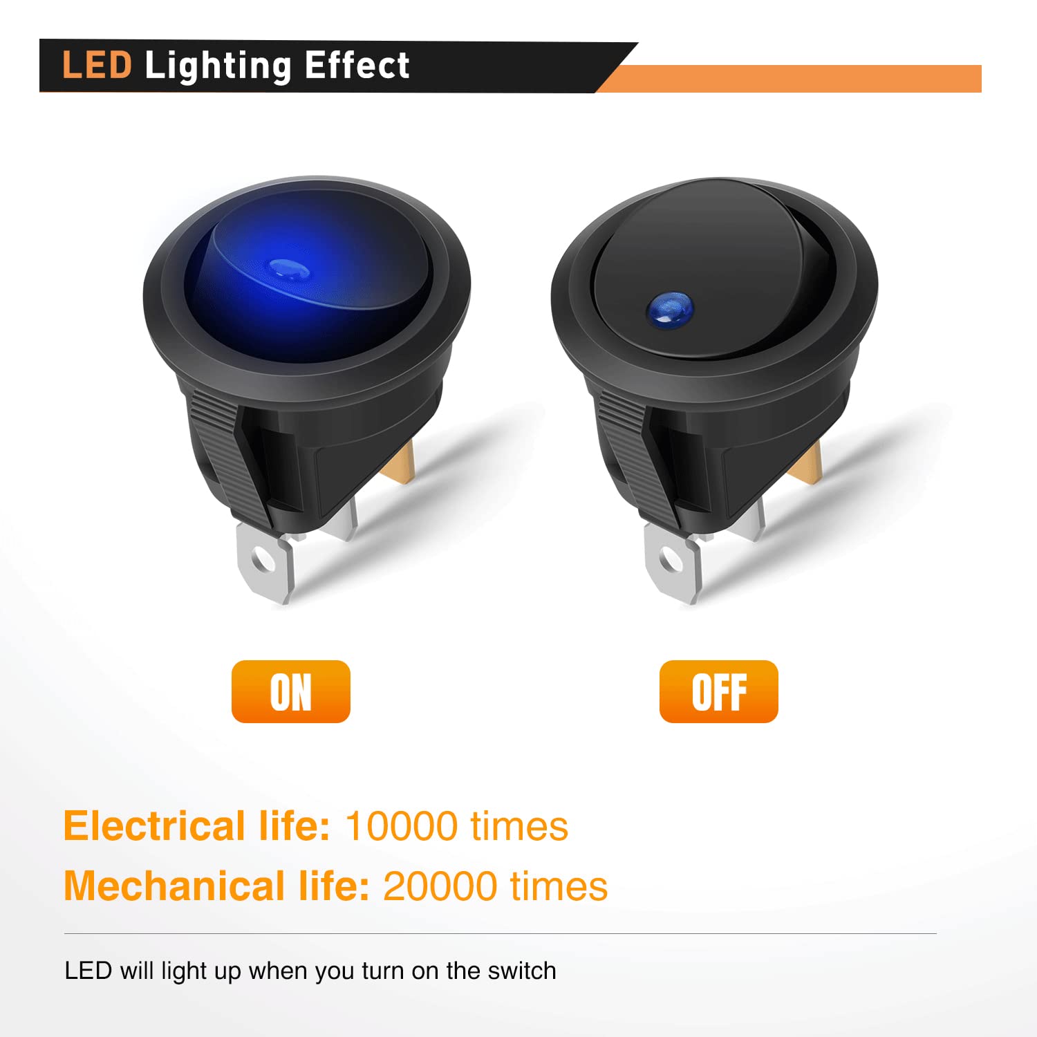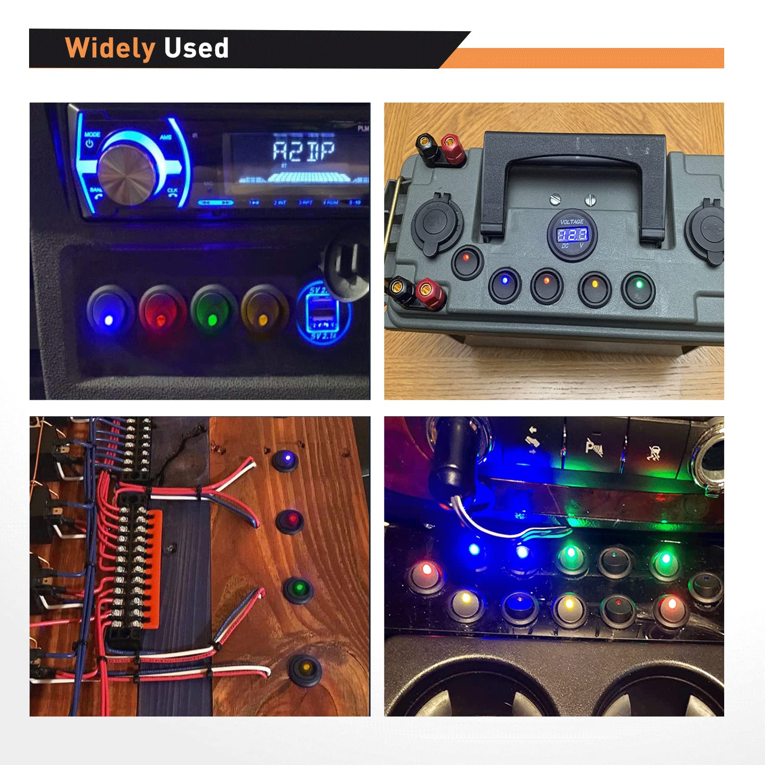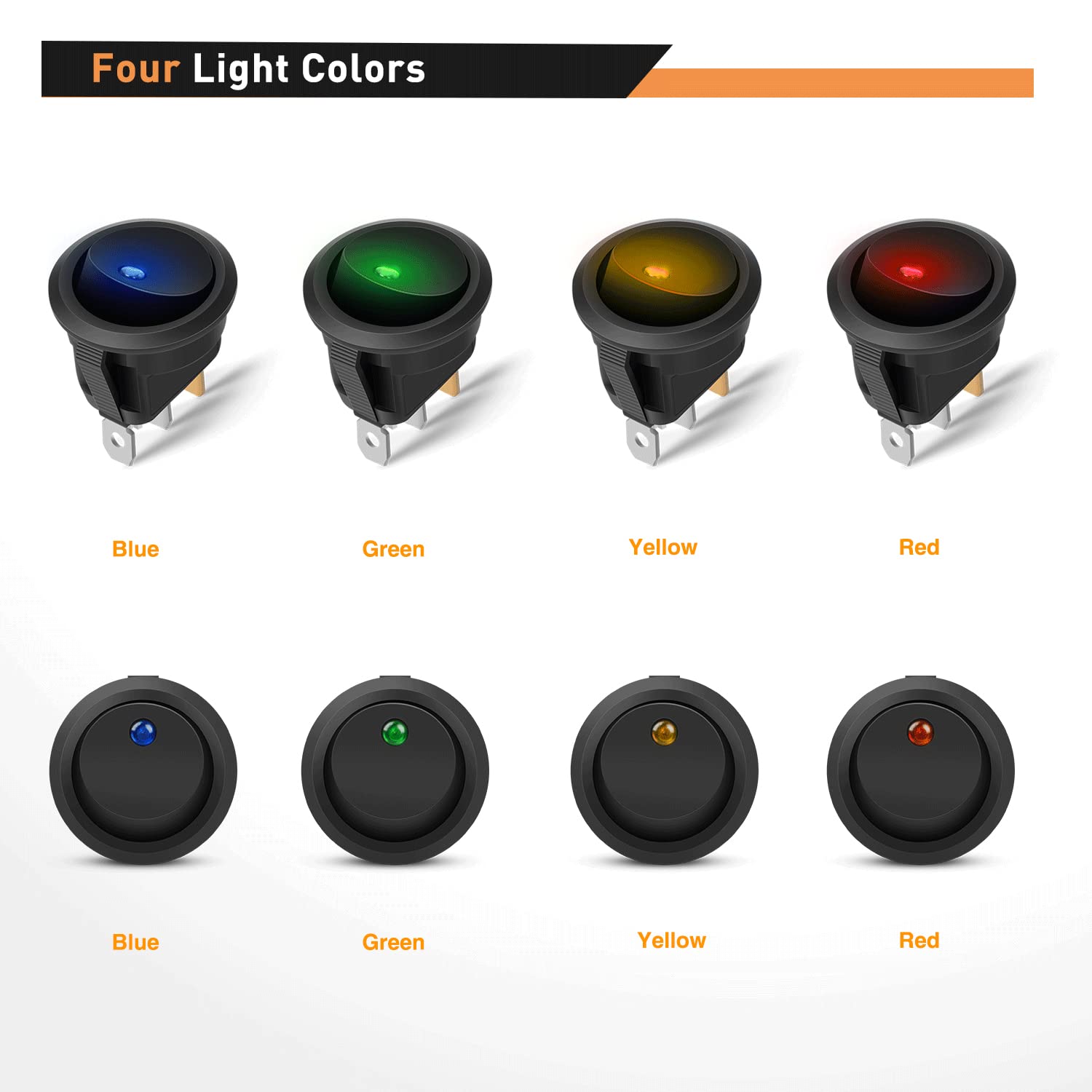 - Package Includes: 12 x Round Toggle LED Switches (3 x Red LED; 3 x Blue LED; 3 x Green LED; 3 x Yellow LED SPST Switches). 2-Year Warranty by Waywe.