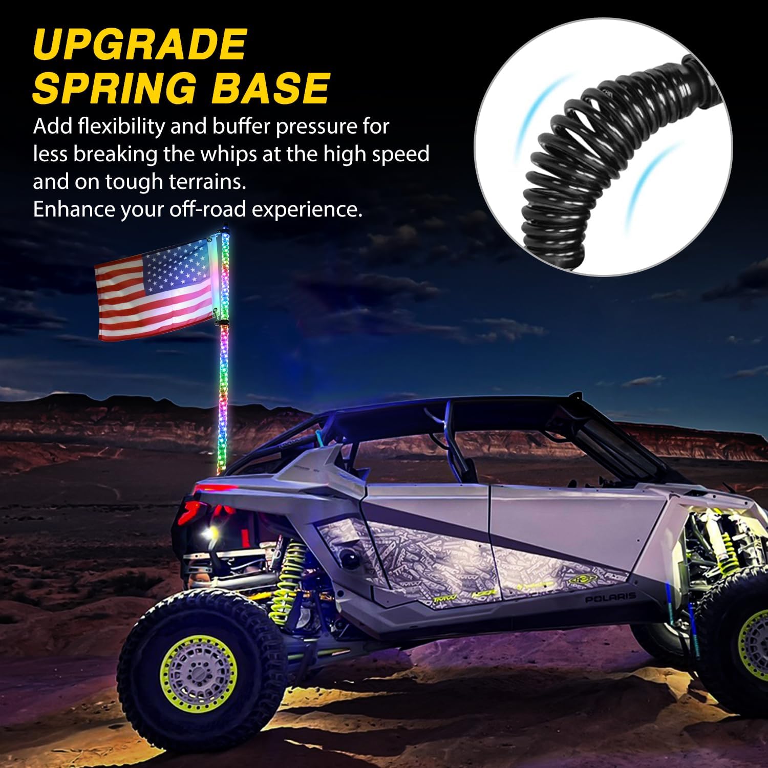 Waywe 1PC 3FT LED Whip Light with Spring Base Spiral RGB Chasing RF Remote Lighted Antenna Whips w/ Rocker Switch for UTV ATV Truck Sand Rail Buggy Dune RZR Can-am