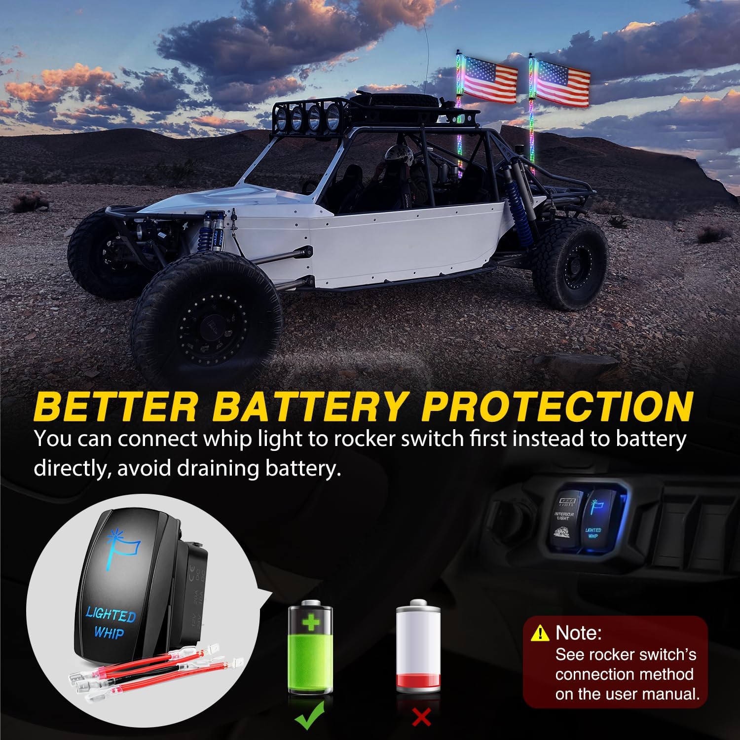 Waywe 2 PCS 3FT LED Whip Light with Spring Base Spiral RGB Chasing RF Remote Lighted Whips w/ Rocker Switch Antenna for UTV ATV Truck Sand Rail Buggy Dune RZR Can-am