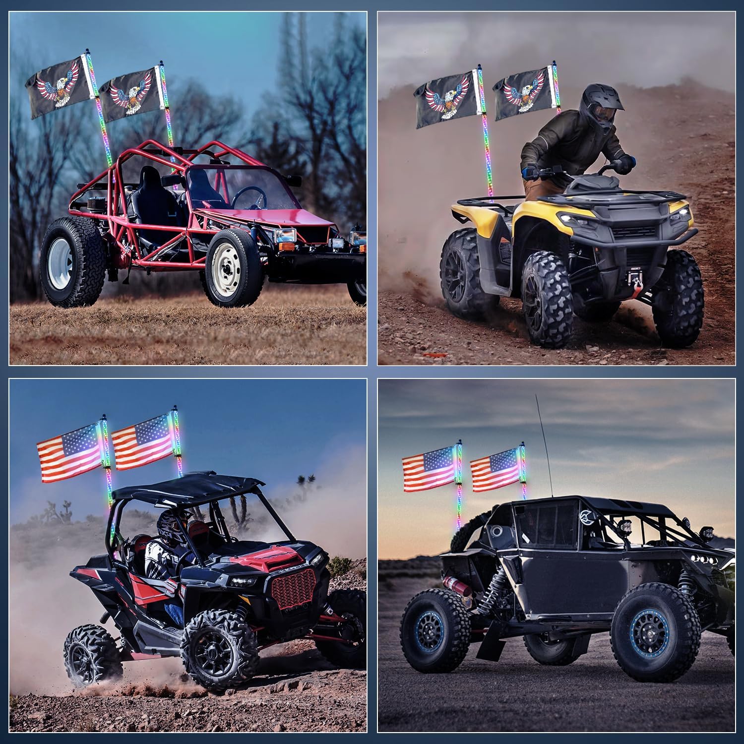 Waywe 2 PCS 5FT LED Whip Light with Spring Base Spiral RGB Chasing RF Remote Lighted Whips w/ Rocker Switch LED Antenna for UTV ATV Truck Sand Rail Buggy Dune RZR Can-am