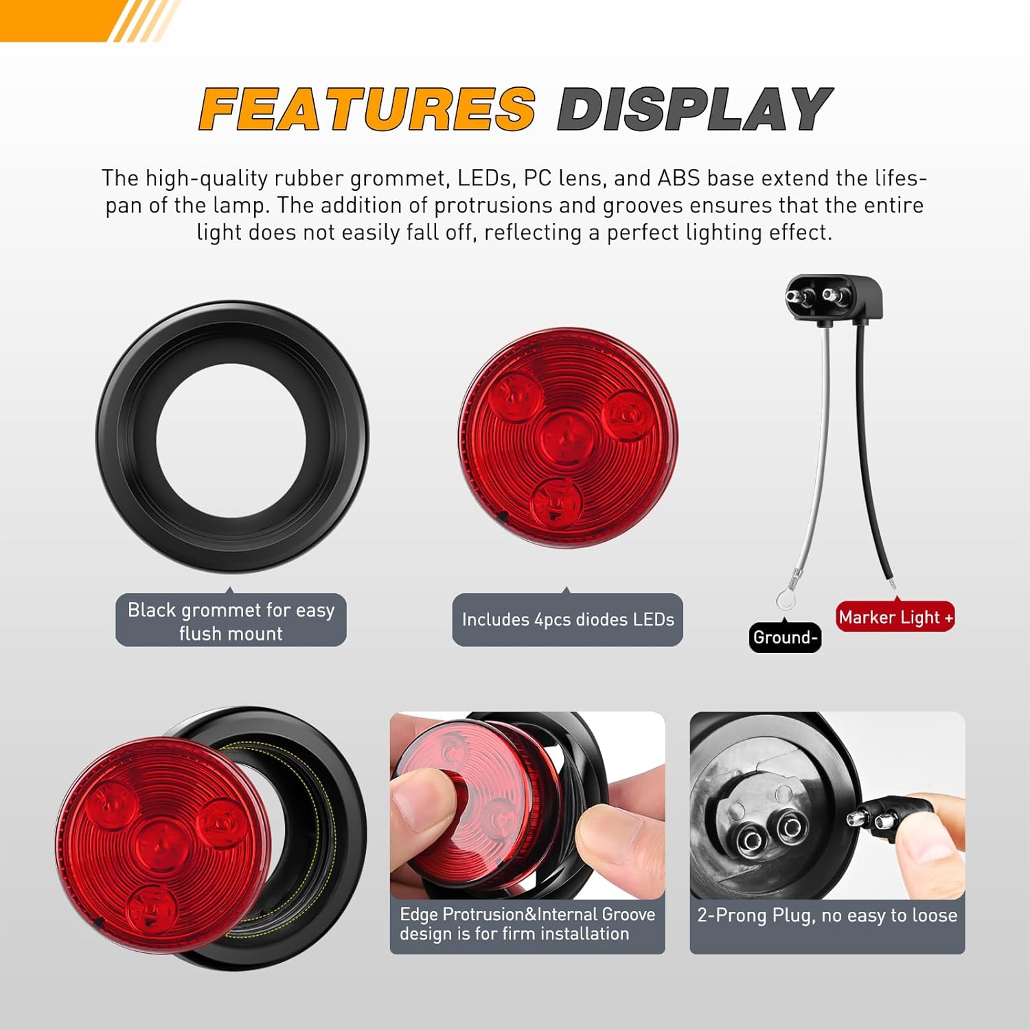Universal Application: The marker light can widely used in 12V heavy duty truck, Trailer, Tractor, Camper, Boats etc. Work as led clearance light, front rear side marker light and led indicator light