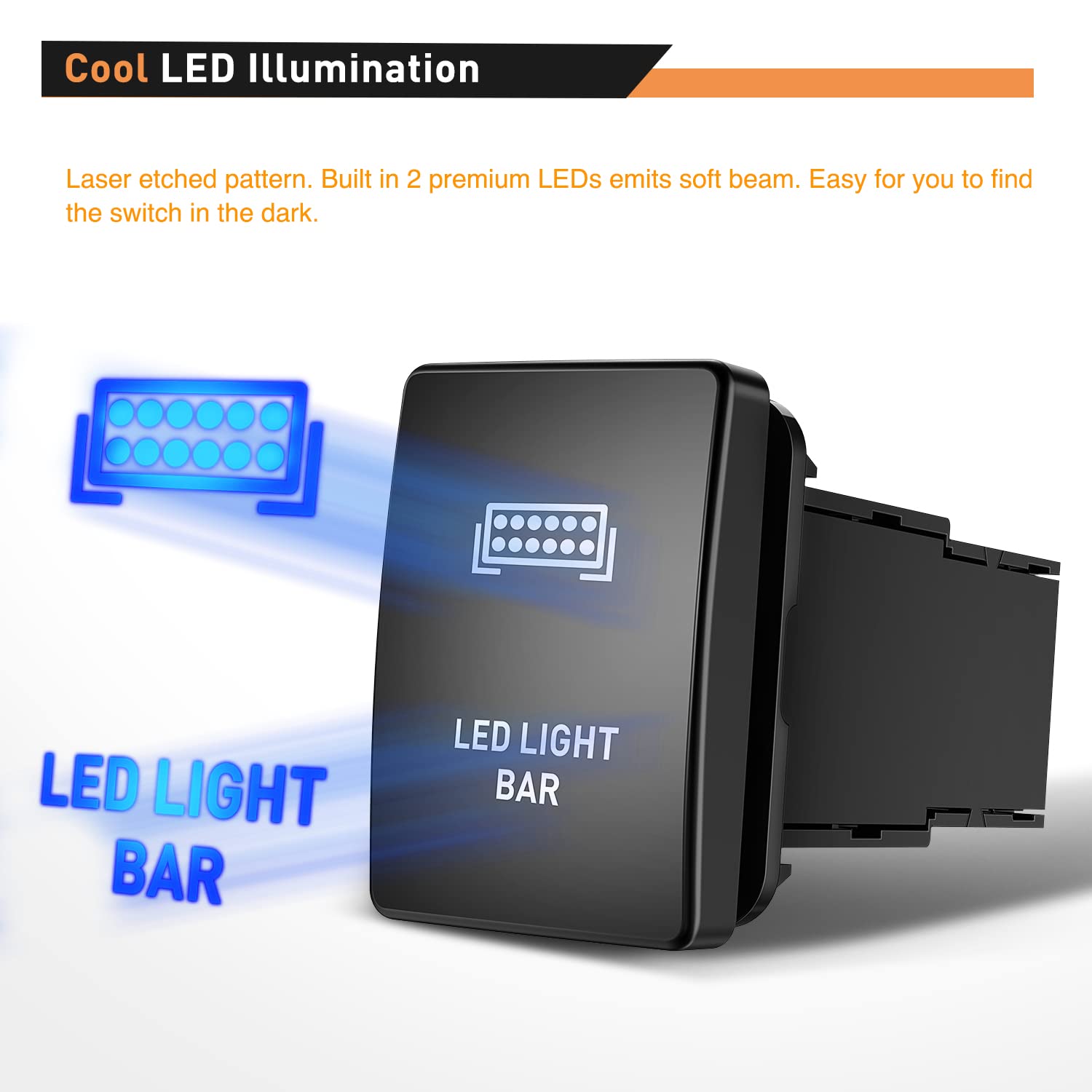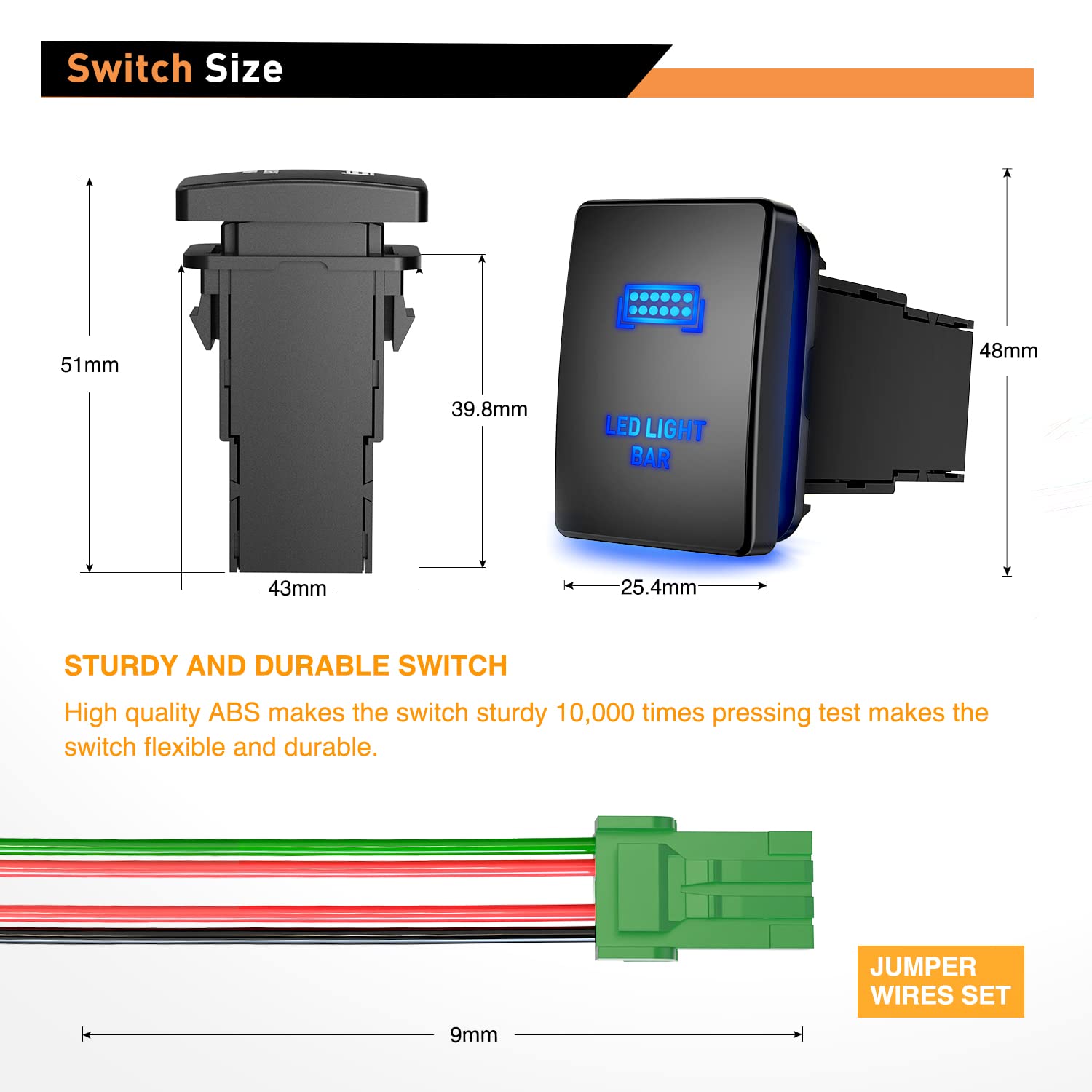 Waywe LED Light BAR Push Button Switch 12V ON Off Switches with Connector Wire Kit 1.28" x 0.87" Replacement for Toyota Sequoia Highlander Tacoma Tundra 4Runner RAVR Yaris