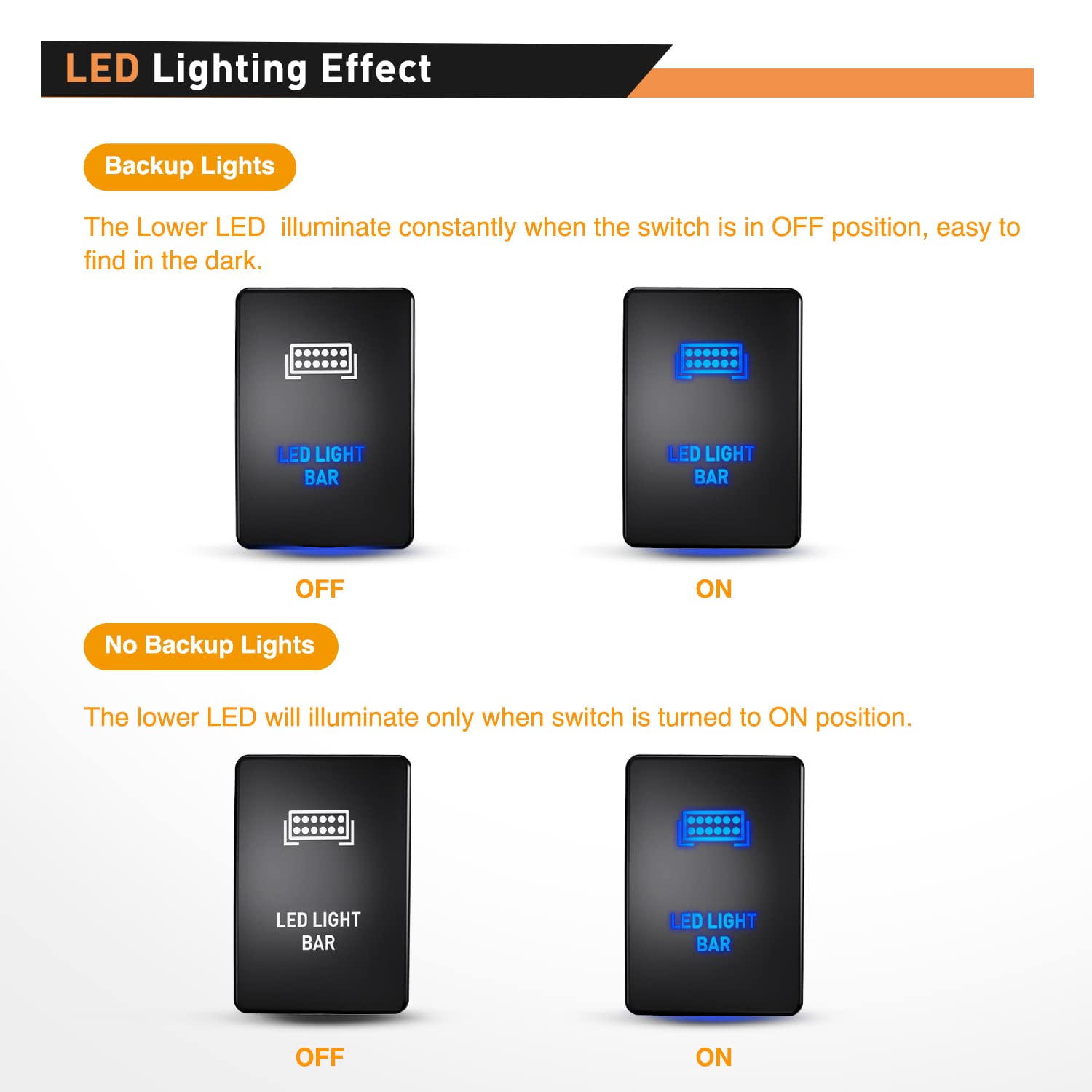 - Wide Application: The switch is perfect for controlling Led Light Bars, Led Work Lights, Fog Lamps, Headlights, Taillights and Auxiliary Lamps, etc. The switch is rated for 3 amps, you would need a relay if your lights are rated higher.